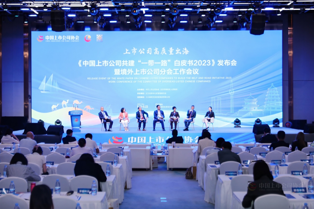 On May 23, the Chinese Association for Public Companies (CAPCO) held the launch event of the 2023 White Paper of China's Listed Companies Jointly Building the "the Belt and Road" and the working conference of Public Companies in Overseas branch of CAPCO in Beijing. Yang Liu, Deputy Director of the Department of International Cooperation of the CSRC, Liu Lei, Executive Vice President of the CAPCO, Liu Cuilan, Deputy Secretary General, and Wu Xiaojie, and Governor of Chaoyang District, attended the event.